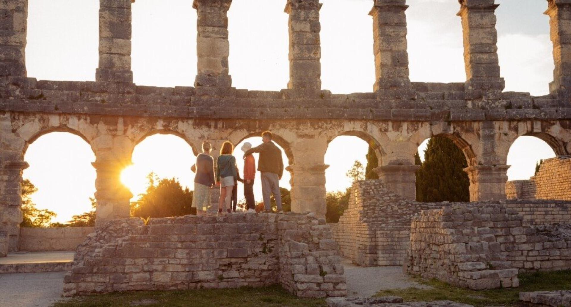 Nachmittags fahren wir weiter ganz an die Spitze Istriens, nach Pula. Das ist nur eine Stunde entfernt. Hier gibt es Bilderbuch-Strände und jede Menge römische Ruinen. Wir erfahren viel über die lange Geschichte der Hafenstadt – und spinnen zusammen Geschichten darüber, wer hier wohl damals gelebt hat.
