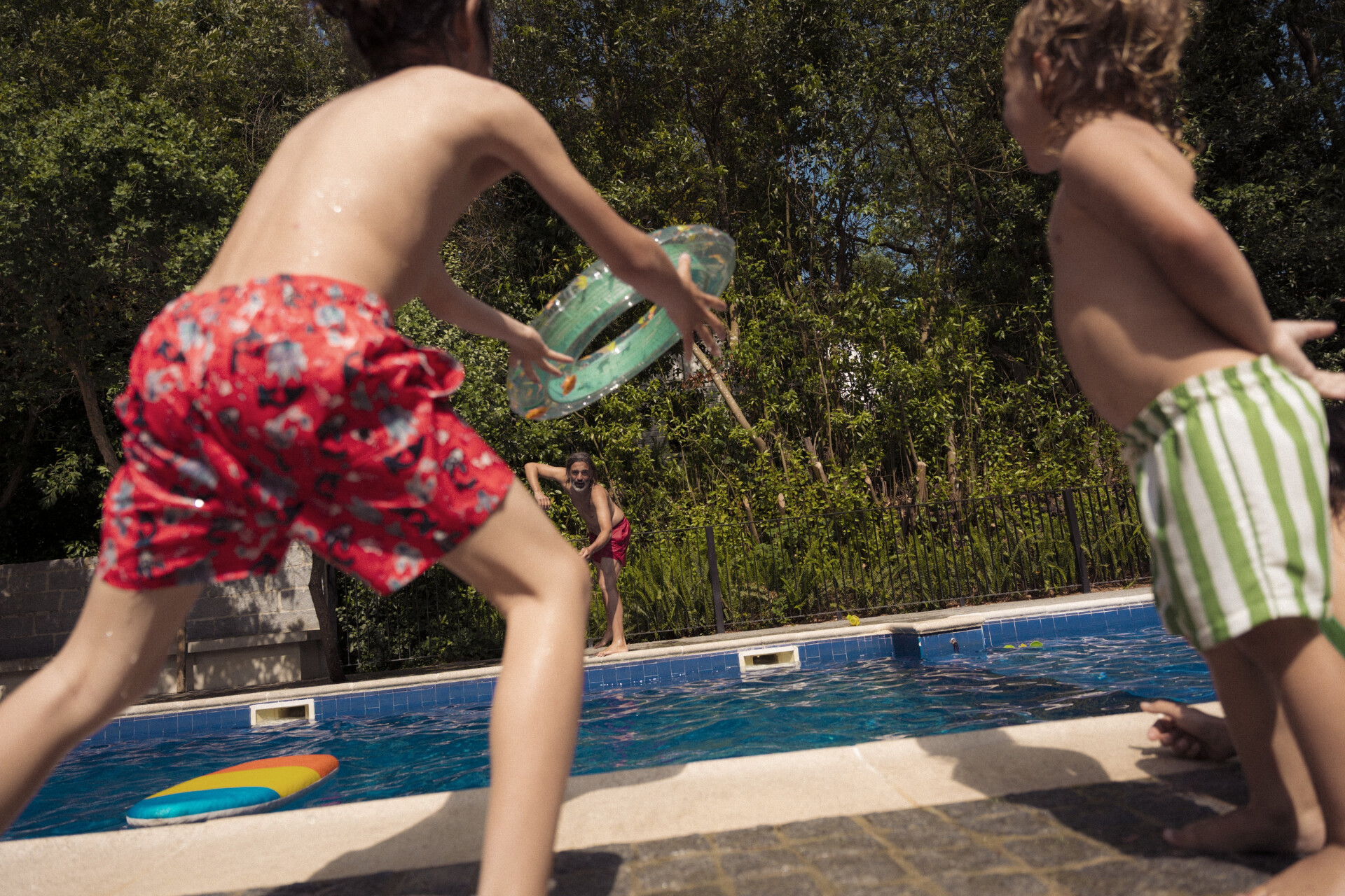 Kaum angekommen, flitzen sie schon los. Erstmal geht’s natürlich in den Pool, war ja klar. Dann eine Runde Tischtennis mit ihren neuen Freunden. Auch wenn Luca kaum über den Rand der Platte schauen kann, seinen Bruder anfeuern schafft er schon richtig gut. Gar nicht mehr zu halten sind sie, als sie die Hühner und Meerschweinchen entdecken, die auf dem Campingplatz leben.