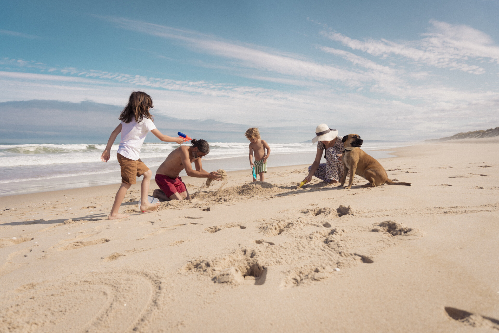 Was wir allerdings schon brauchen, ist eine Pause – zumindest wir Erwachsenen. Und da wir sowieso schon im Auto sitzen, machen wir einfach einen Abstecher an den Strand von Osso da Baleia. Die Kids haben scheinbar immer noch Energie, buddeln im Sand und gehen auf Stöckchensuche für Malou. Aber hey, wenn sie sich selbst beschäftigen, ist das ja der Eltern-Jackpot!