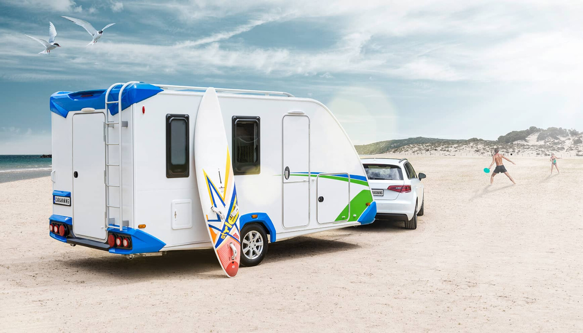 Die meisten Wohnwagen haben je nach Größe eine Zuladung von rund 150 bis 300 Kilogramm. Das genügt für die Campingausrüstung und die Kleidung der Reisenden. Mehr ist nicht nötig, schließlich ist da ja noch das Zugfahrzeug, in dem auf der Reise auch noch reichlich Gepäck verstaut werden kann. Wer allerdings Freizeitaktivitäten ausübt, die ein größeres Sportgerät erfordern, der sollte einen Wohnwagen kaufen, in dem er dieses Sportgerät auch transportieren kann. Das beginnt schon bei Fahrrädern. Dafür gibt es Wohnwagen mit Garagen oder externe Träger, die über der Deichsel oder am Heck montiert werden. In der Klasse der Activity-Caravans gibt es hingegen Modelle mit Zuladungen von bis zu 1.000 Kilogramm. Hier ist auch eine große Klappe an der Rückwand vorhanden. Mit einer Auffahrrampe können so sogar zwei Motorräder in diesen Wohnwagen transportiert werden. Oder die Kitesurf-Ausrüstung, Surfbretter, ein Faltboot oder andere sperrige Sportgeräte.