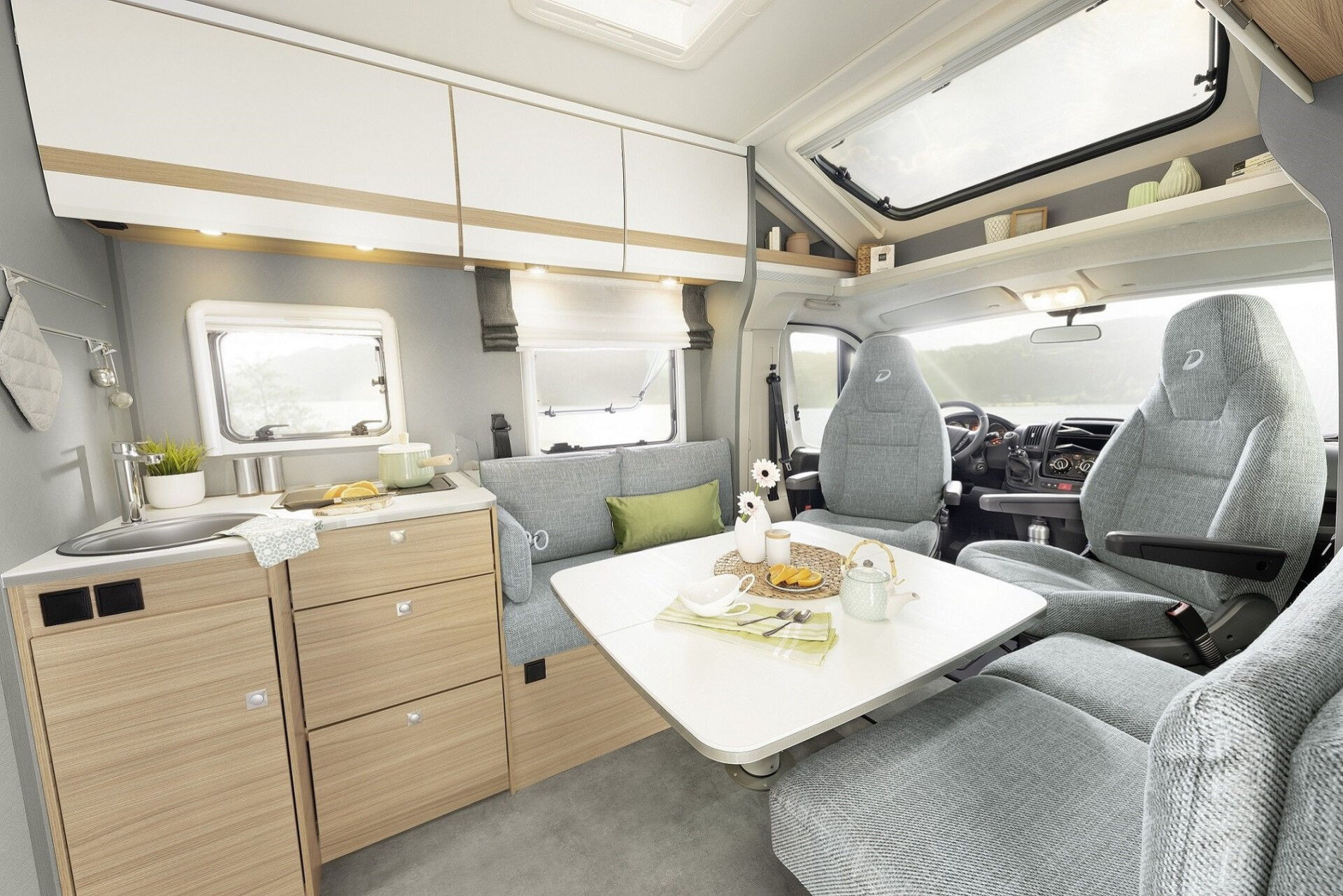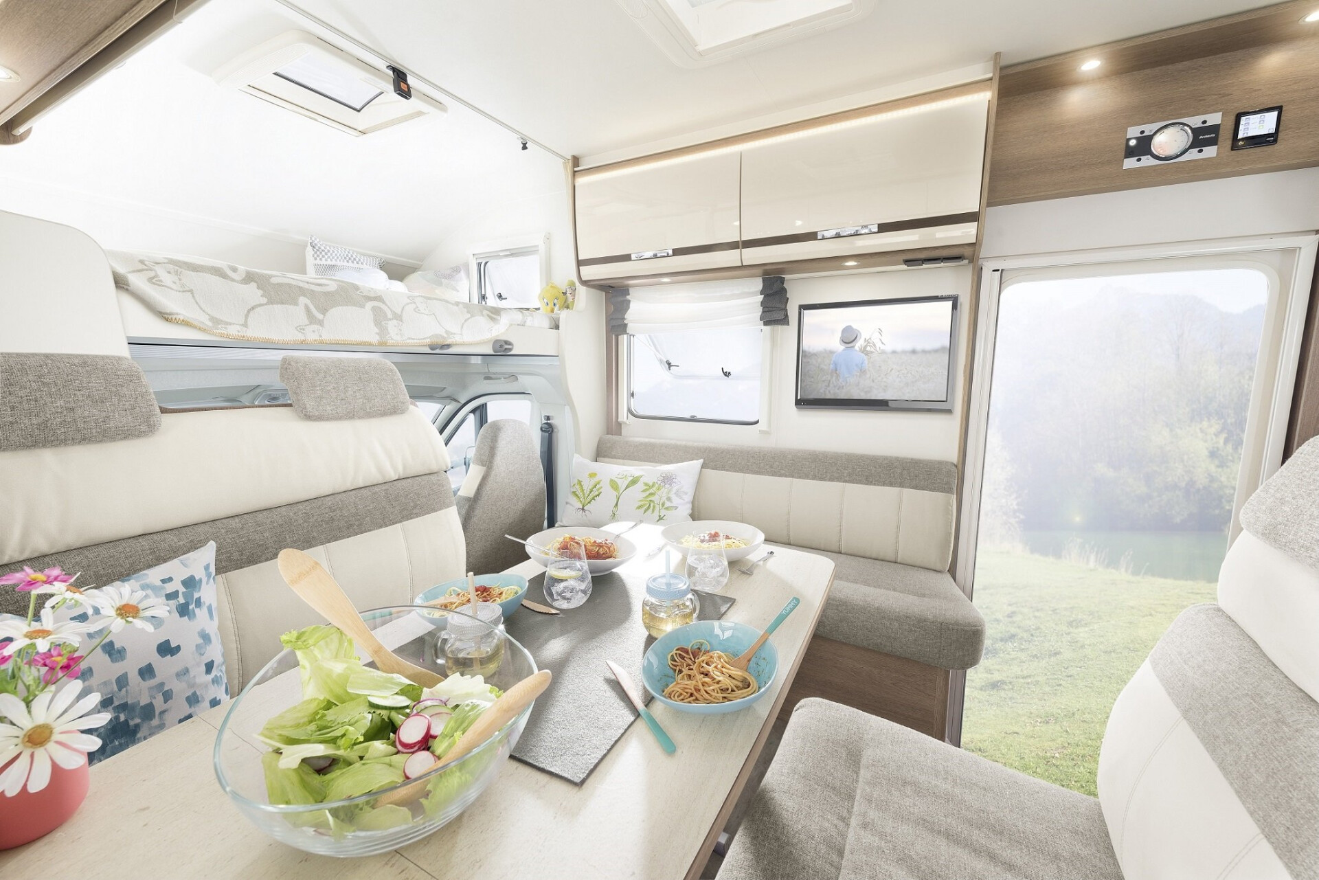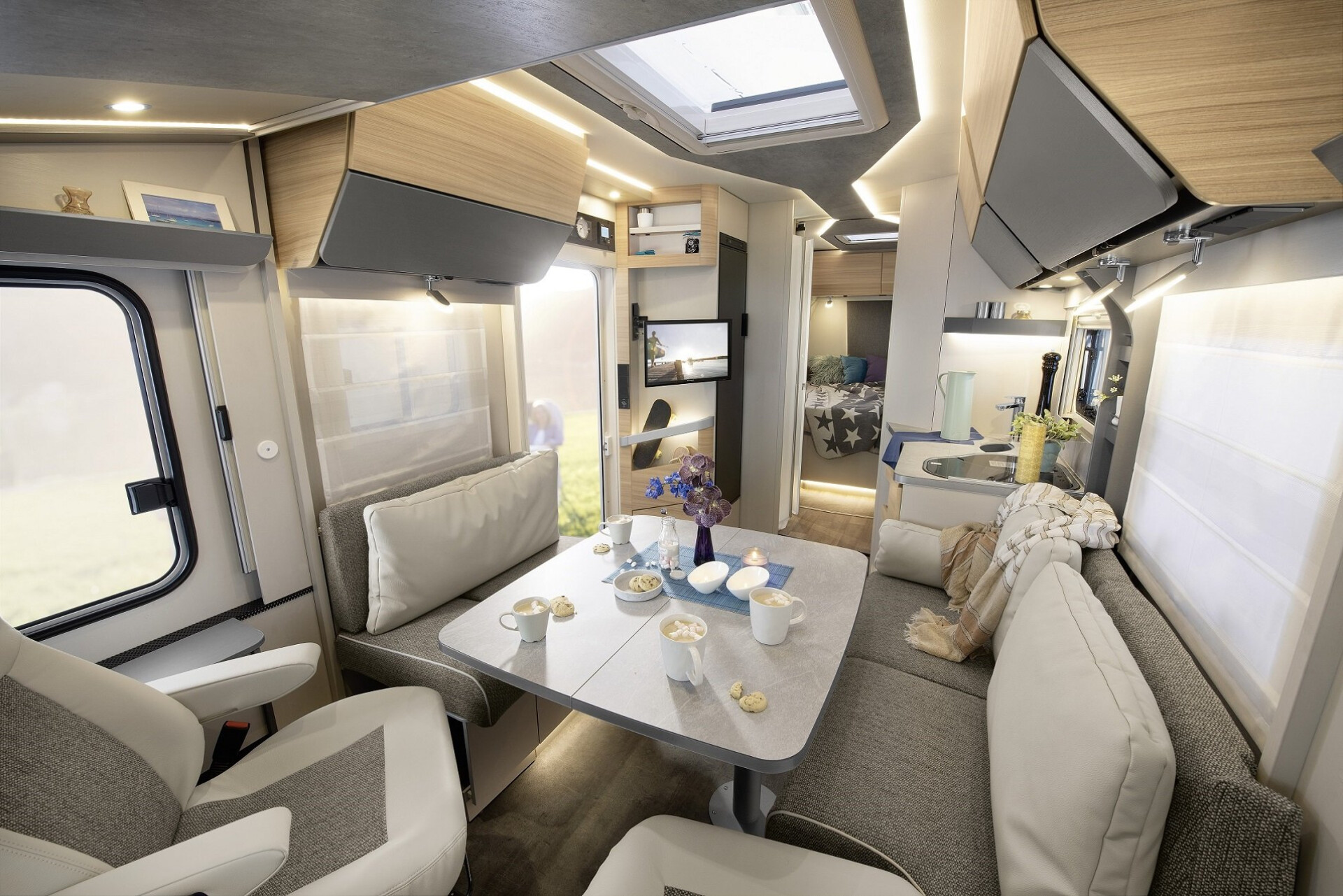 Der Dethleffs Pulse ist das Reisemobil am Pulse der Zeit und bietet ein harmonisches Ambiente, das durch eine spezielle Lichtkomposition in Szene gesetzt wird.