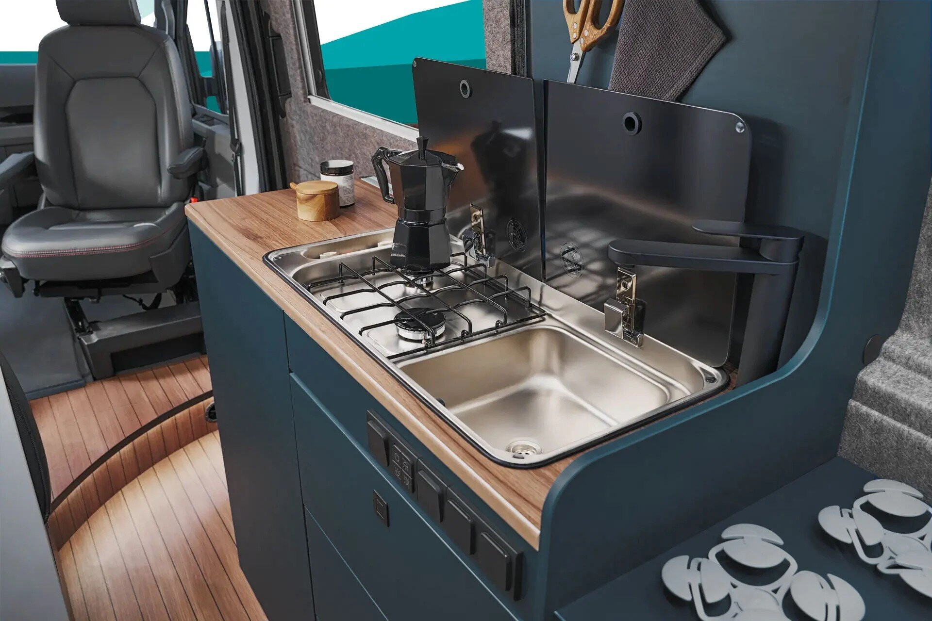 Mit dem neuen ERIBA Car steht jetzt auch ein Campervan zur Verfügung, der durch praktische Detaillösungen und einen wohnlichen Innenraum besticht – der ideale Begleiter für spontane Erlebnisse.