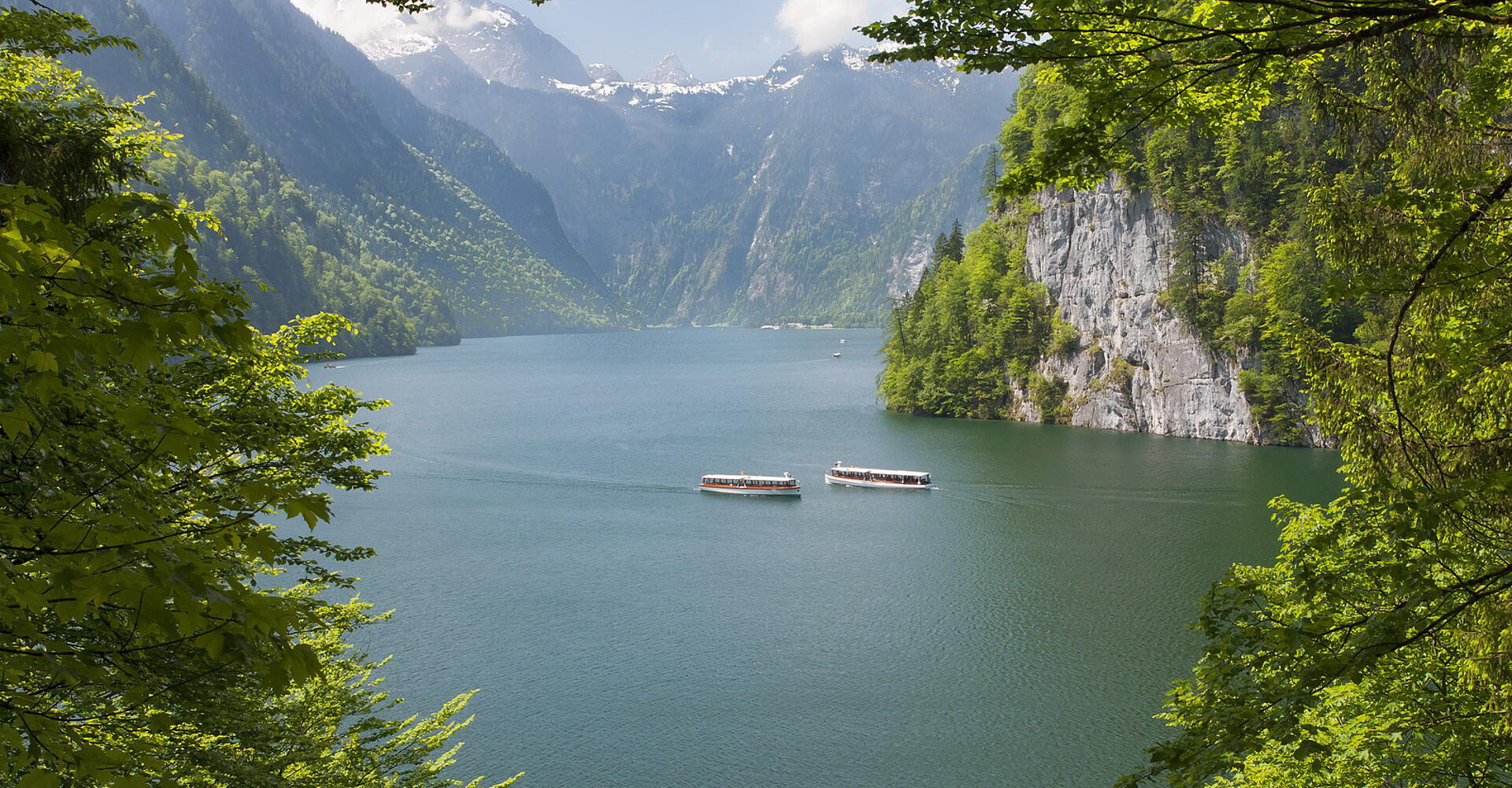 Wir empfehlen, auf dem Königssee eine Bootstour zu machen. Entweder nutzt man die elektrischen Boote für eine entspannte Rundfahrt oder als Transportmittel zum Erkunden anderer Wander- und Radwege. Als Ziele einer Bootsfahrt auf dem Königssee können die Wallfahrtskirche St. Bartholomä oder die Endstation Salet angesteuert werden. Mit ca. 20 Minuten Fußweg sind von dort aus zum kleinen Bruder des Königssees, dem Obersee, einzuplanen . Der daran angeschlossene Räthbach-Wasserfall ist, als Deutschlands höchster Wasserfall, ebenfalls einen Ausflug wert.