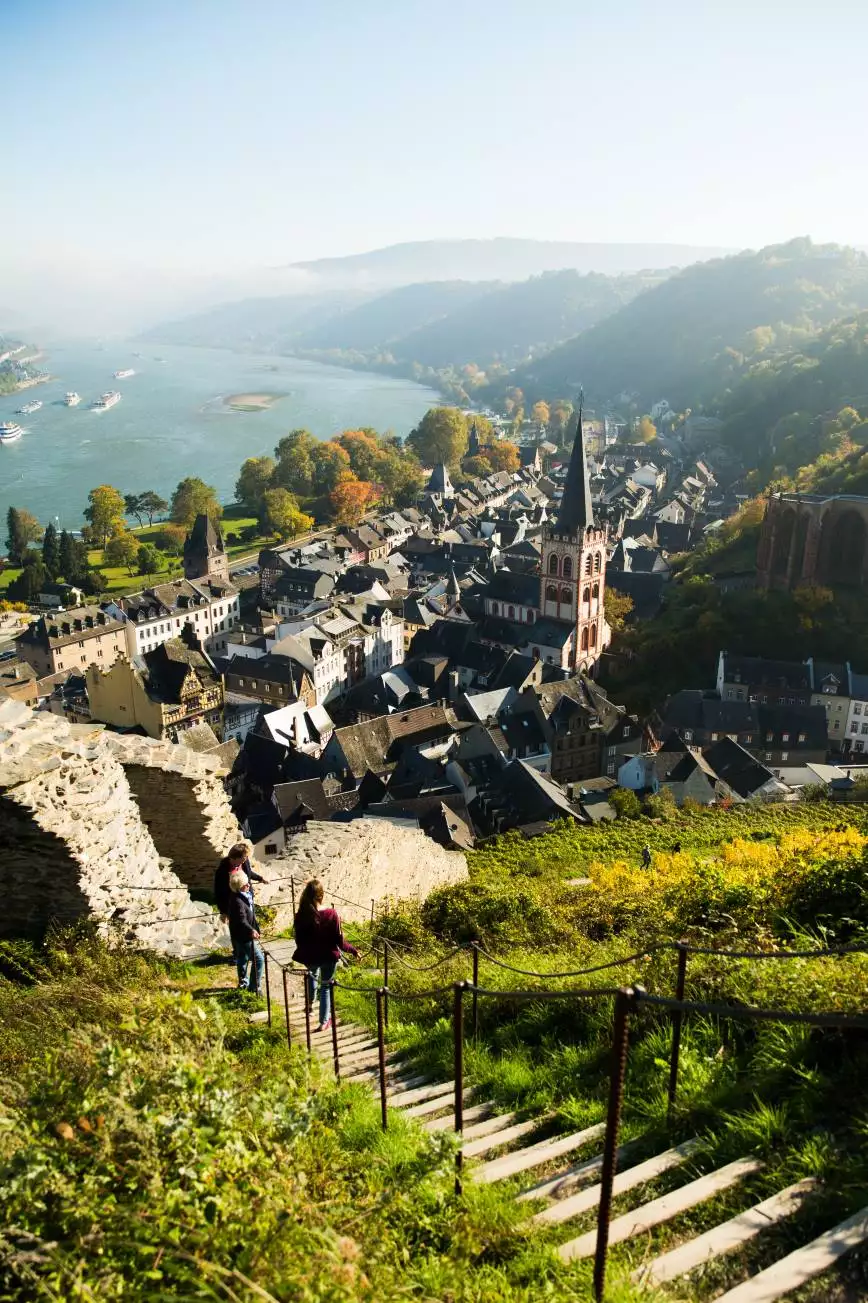 Die Fahrt mit der Seilbahn präsentiert die schönsten Seiten des Rheintals und der Stadt. Auf der 1.400 Meter langen Strecke schwebt man über den Rhein und kann dabei das idyllische Panorama genießen. Wandert man im Anschluss nach Assmannshausen, kann man noch Burg Rheinstein, das Symbol der Rheinromantik, aus der Ferne begutachten.