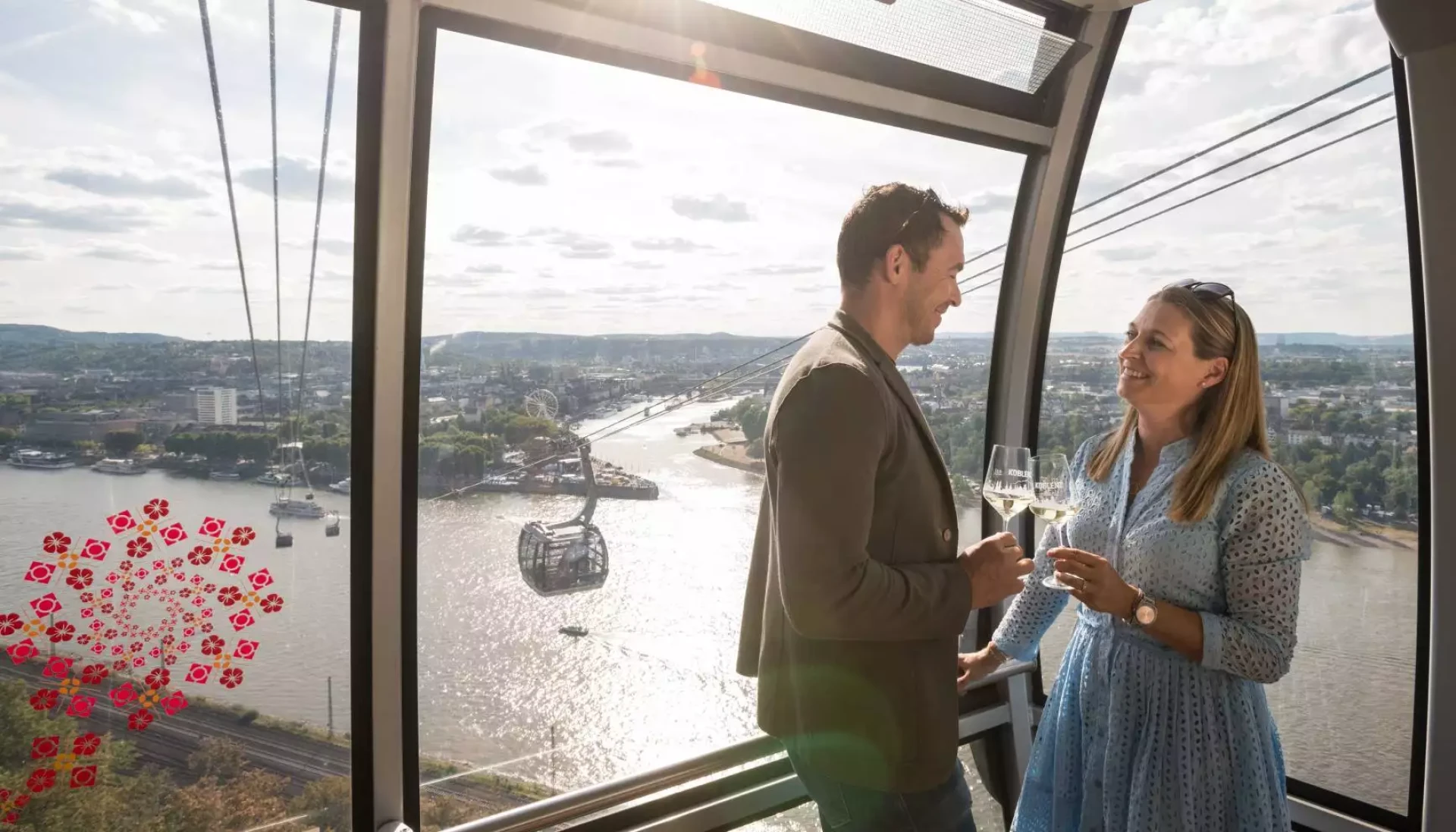 In Koblenz findet man viele sehenswerte Burgen und Schlösser. Zu den bedeutendsten Sehenswürdigkeiten zählt die Festung Ehrenbreitstein, die zweitgrößte erhaltene Festung Europas. Viele der weiteren atemberaubenden Besonderheiten der Stadt lassen sich bequem mit der Seilbahn erkunden. Die Fahrt geht über den Rhein hinauf zur Festung Ehrenbreitstein und ermöglicht einen spektakulären Blick auf die Stadt und auf den Zusammenfluss von Rhein und Mosel.