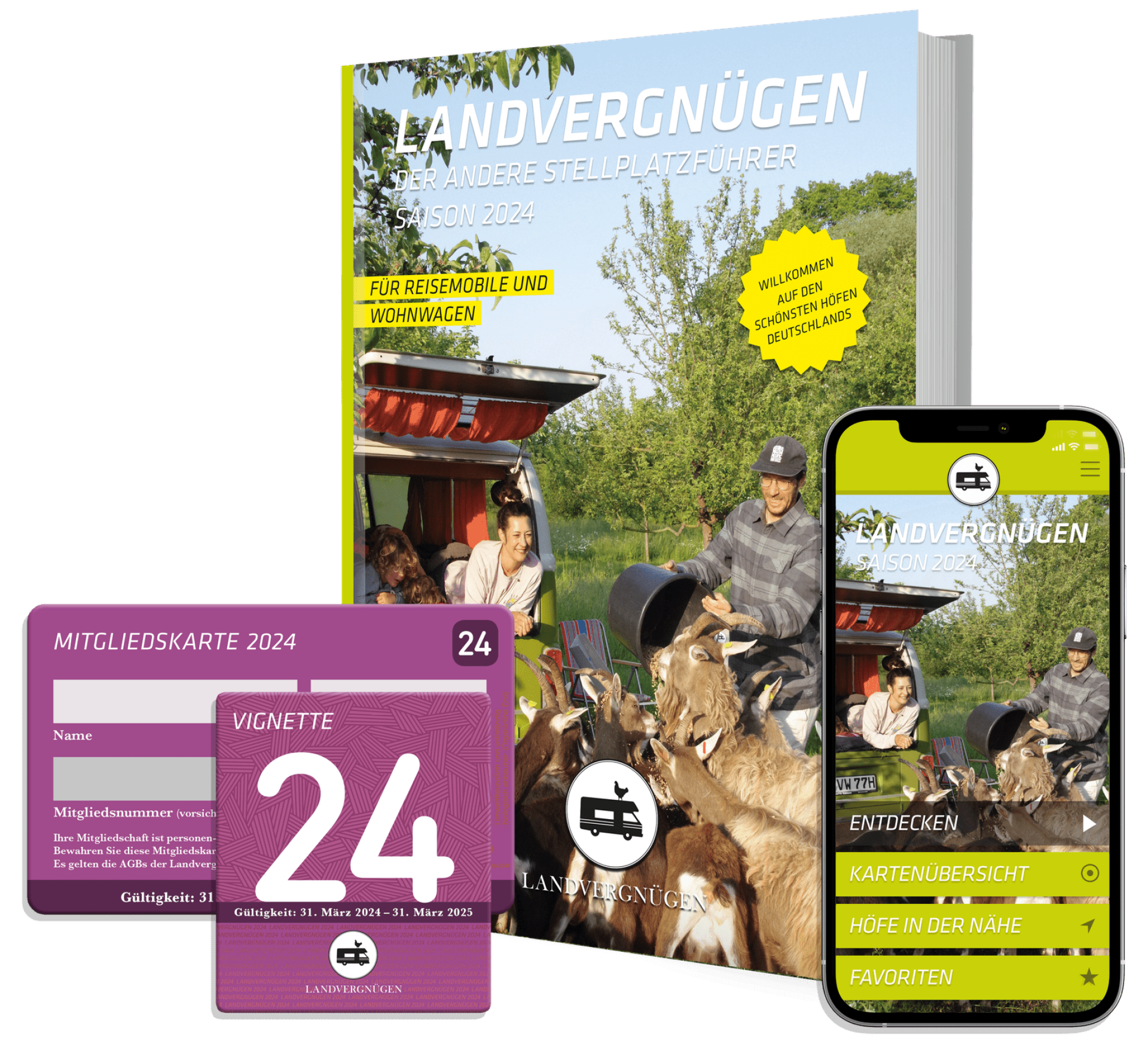 • Beigelegte Landvergnügen-Jahresvignette ermöglicht 24 Stunden kostenfrei in ruhiger und naturnaher Atmosphäre zu stehen