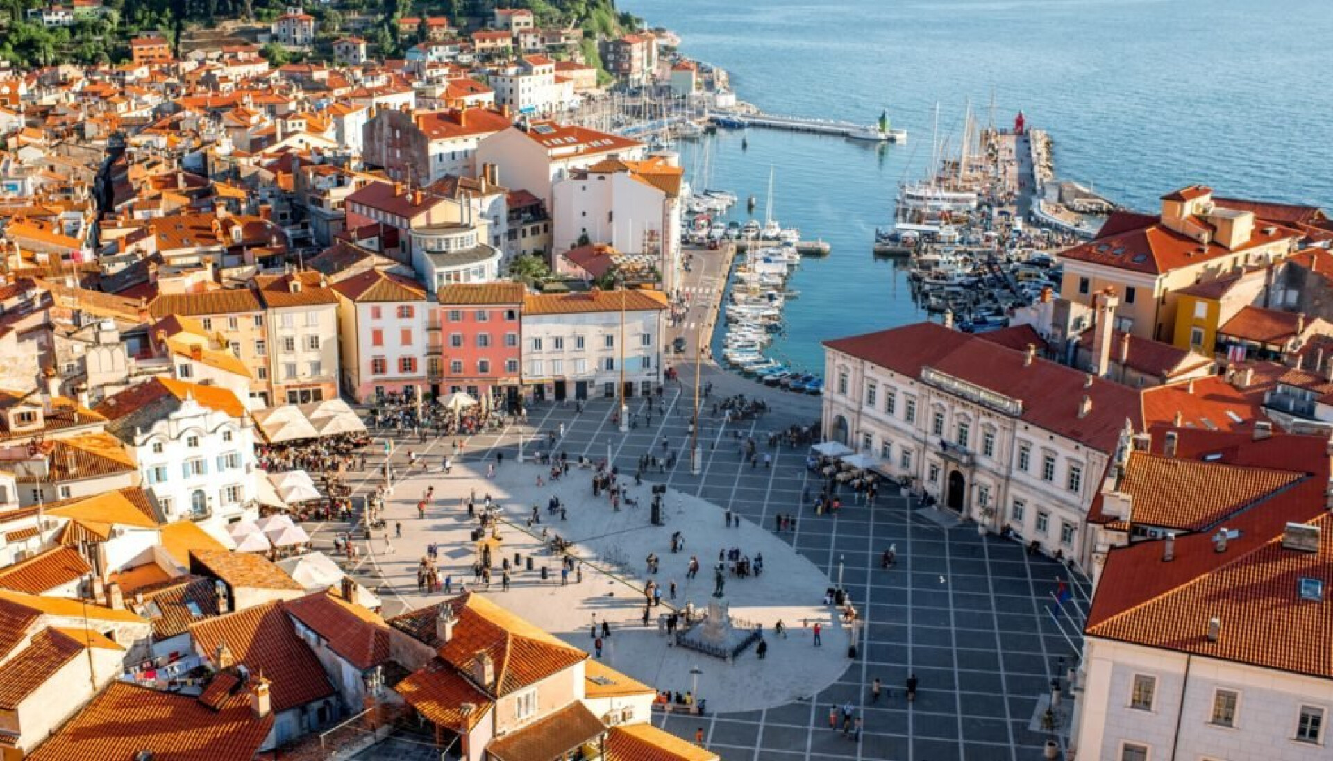 Slowenien hat allerdings nur einen winzigen Küstenabschnitt: Knapp 50 Kilometer lang ist die Adria-Küste des kleinen Landes. Auf dieser Strecke muss sich dann auch alles versammeln, was das Land braucht: Im Norden liegt Koper, die Industrie- und Hafenstadt mit rauchenden Schloten, Schwerindustrie und Hafenanlagen. Etwas weiter südlich Piran, das romantische Städtchen auf einer spitz zulaufenden Halbinsel, dem man seine venezianische Vergangenheit nicht nur am Kampanile ansieht; und in der Nachbarbucht dann Portoroz, das mondäne Strandbad mit Sandstrand. Schön, hier am Abend zu bummeln; vor den Bars spielt Open-Air-Musik, und in den umliegenden Restaurants riecht es verführerisch nach gegrilltem Fisch …