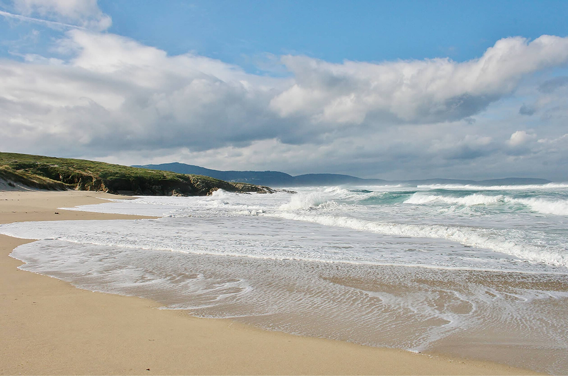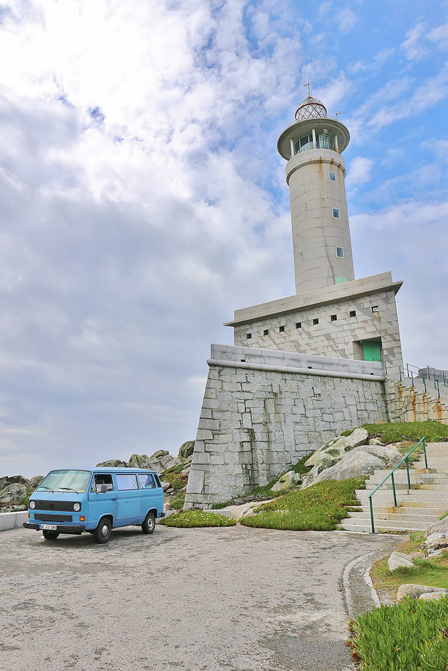 Vor allem aber auch viele versteckte Buchten und Sandstrände, die trotz Wind und Wellen gute Badeorte sind, gibt es in Galicien. Praia da Concha zum Beispiel, der weiße Strand, der sich in einer weiten Bucht bis zu dem kleinen Fischerdorf O Porto de Bares zieht, wo man in den kleineren Restaurants den fang des Tages essen kann. An besonders heißen Tagen wird es hier allerdings voll. Die Parkmöglichkeit am Strand ist dennoch ein guter Schlafplatz. Oder Sie fahren die zweieinhalb Kilometer weiter zum Leuchtturm, dem nördlichsten Punkt des spanischen Festlandes, wo die Nächte etwas windiger werden können.