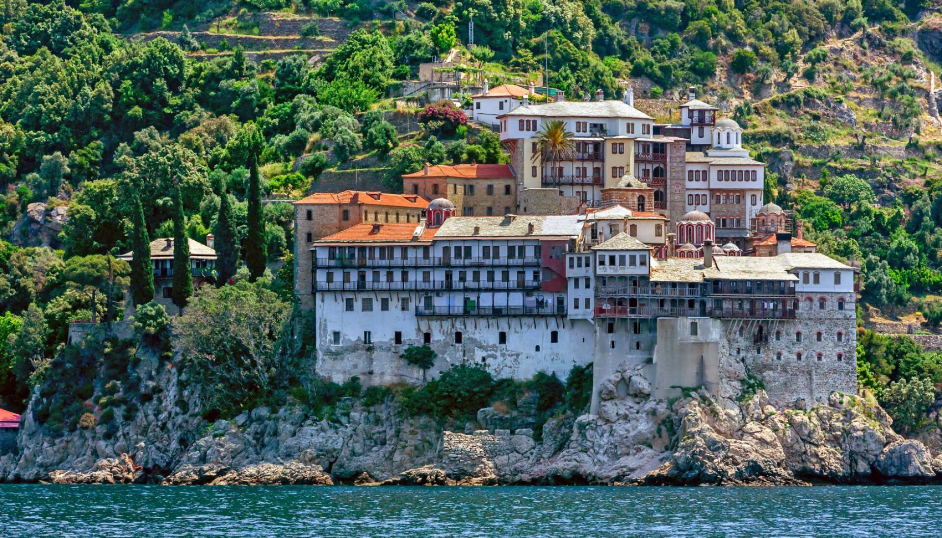 Normal-Touristen bleibt nur das Ausflugsschiff, um die 20 größeren Klöster und die vielen Einsiedeleien aus relativer Nähe zu betrachten – dichter als 500 Meter dürfen Schiffe mit weiblichen Passagieren an Bord nicht an die Küste, um die Welt der Stille und Meditation nicht durch den Anblick oder die Stimmen von Urlauberinnen zu stören.