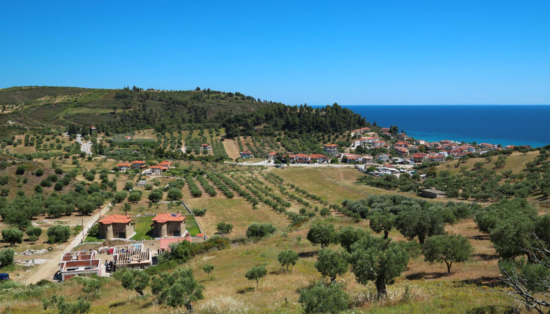Auf der Weiterfahrt passieren wir bei Kalithea den größten Hotelkomplex Nordgriechenlands, die Hotels Athos Beach mit elf und Pallini Beach mit neun Stockwerken. Wir verlassen Kassandra wie auf dem Herweg über Nea Potidea. Dann halten wir uns ostwärts in Richtung Sithonia.