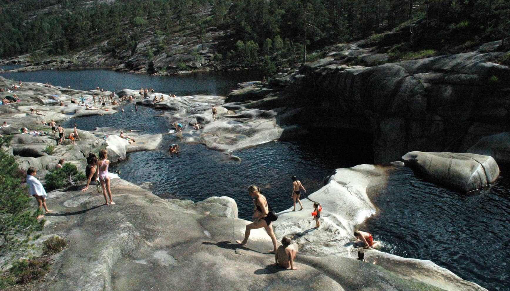 Tolle Badelandschaft aus Naturbecken in den Felsen. Sie liegen in Haugsjåsund, nur wenige Kilometer südlich des Sees Nisser.