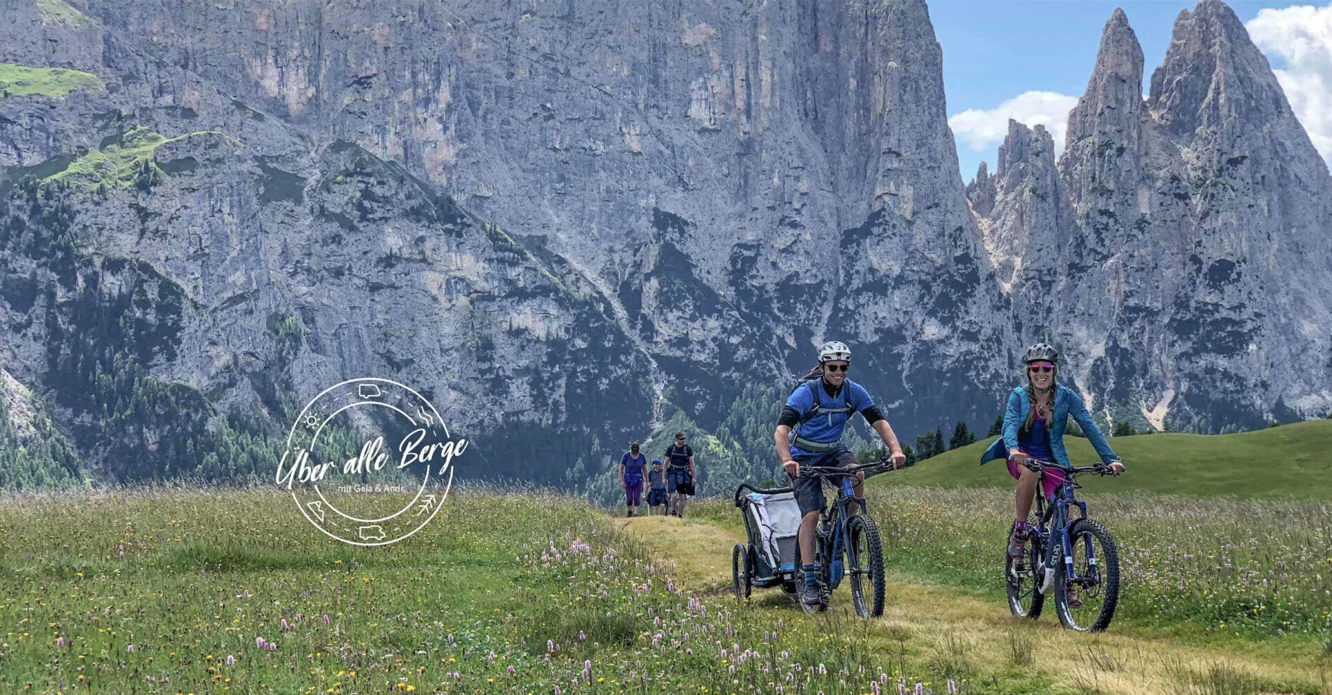 Gela Allmann: Im Sommer liebe ich Bergwandern. Auf dem Weg zum Gipfel bin ich ganz in meinem Element – und auch mit Felix klappt das super. Er ist dann einfach in einer Trage mit dabei. Wer uns auf unserer Reise folgt, kann sich also schon mal auf viele wunderbare Bergpanoramen freuen. Auch mit dem E-Mountainbike und Rennrad sind wir gern unterwegs – mit Felix im Anhänger. Hier ist für mich eher das Ziel, auf den Berg raufzukommen – bei Andi ist es genau umgekehrt.